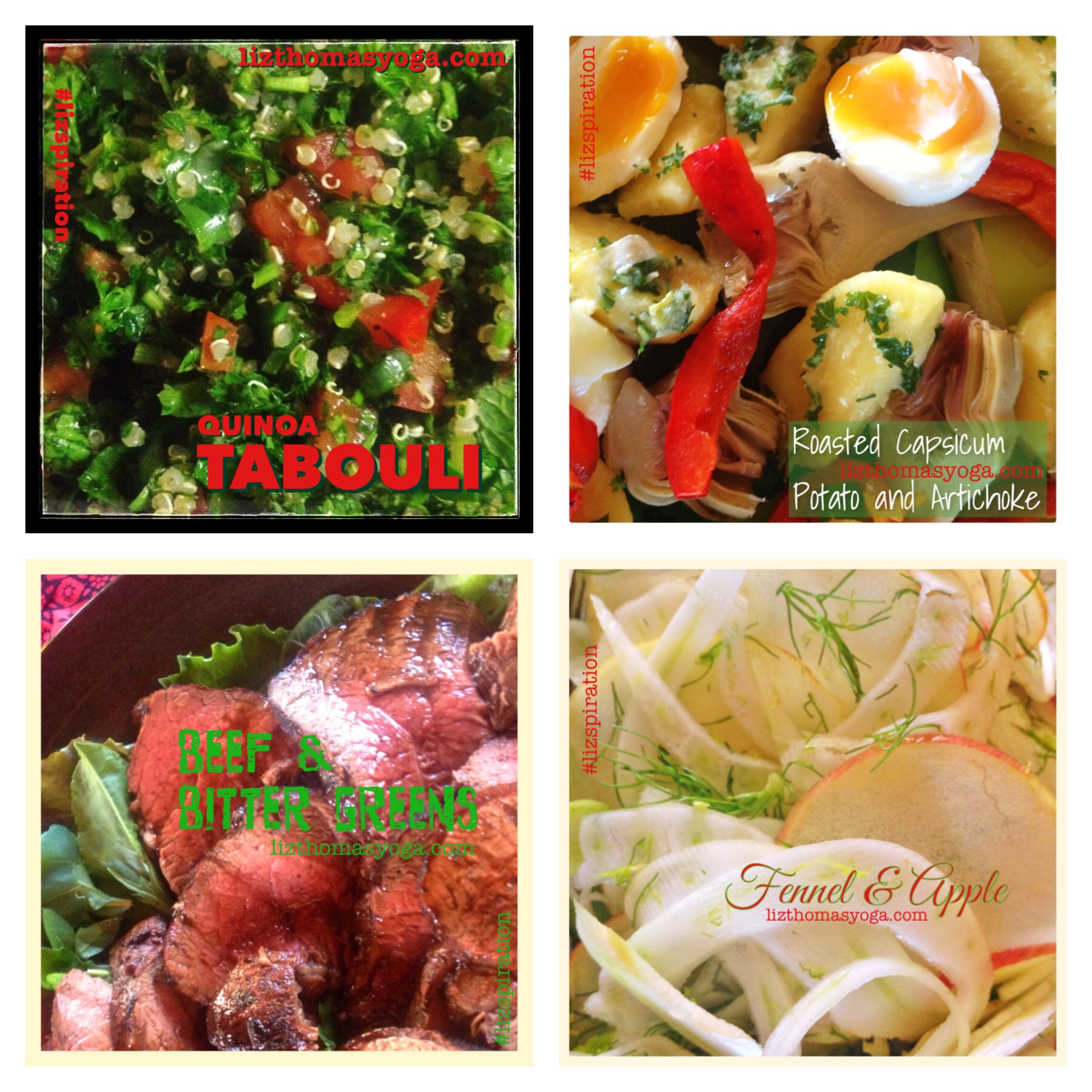 This is a beautiful salad to eat with falafel (chickpea fritters) or grilled fish and meats, maybe with a little tahini sauce. Its so good for you with all the parsley and mint but the quinoa pumps up the nutrients with its complete amino acid profile.