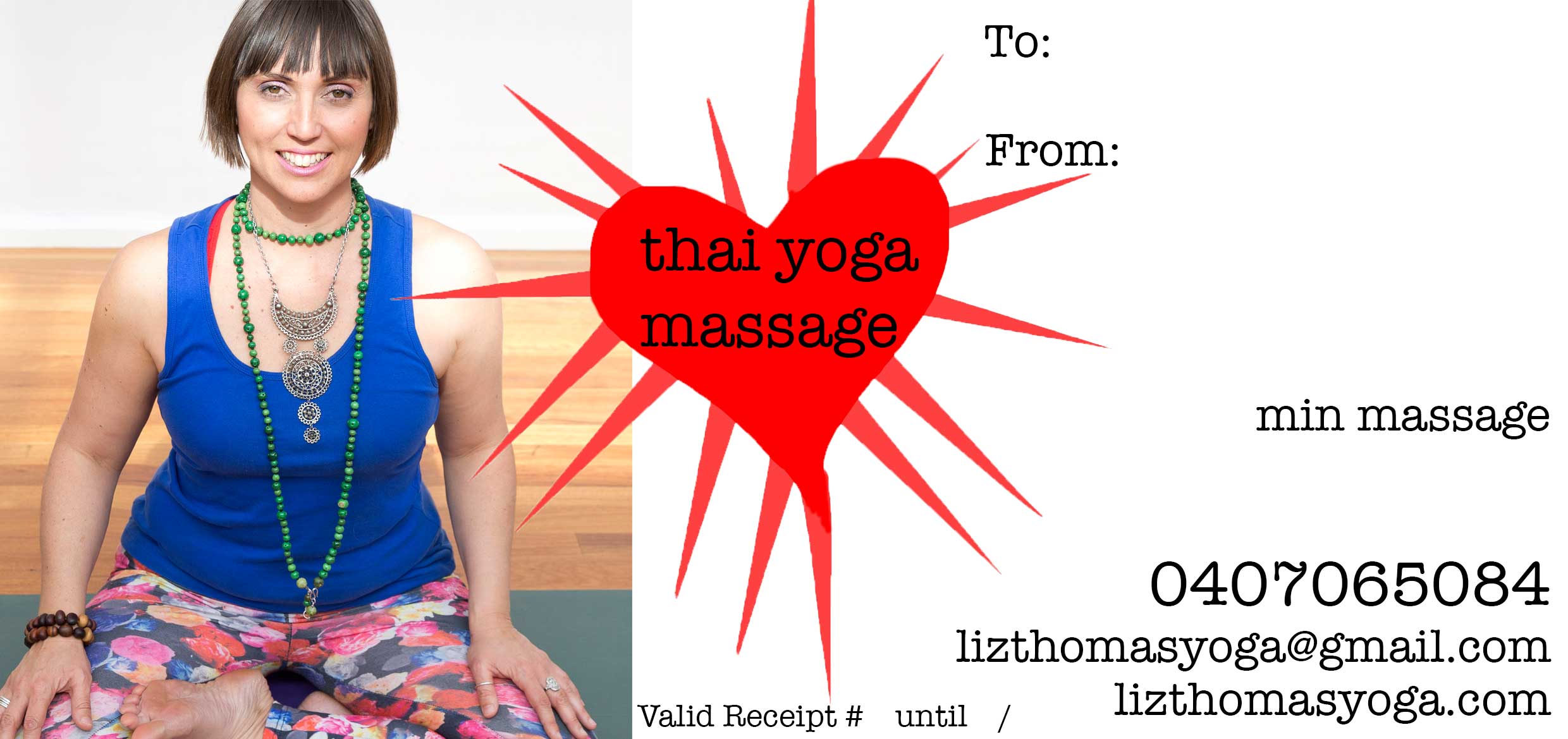 Massage voucher available for NEXT DAY postage, to your place or to another address. Delivered in a silver envelope $75 for Foot Reflexology (60mins) $90 Thai Yoga Massage (75mins).